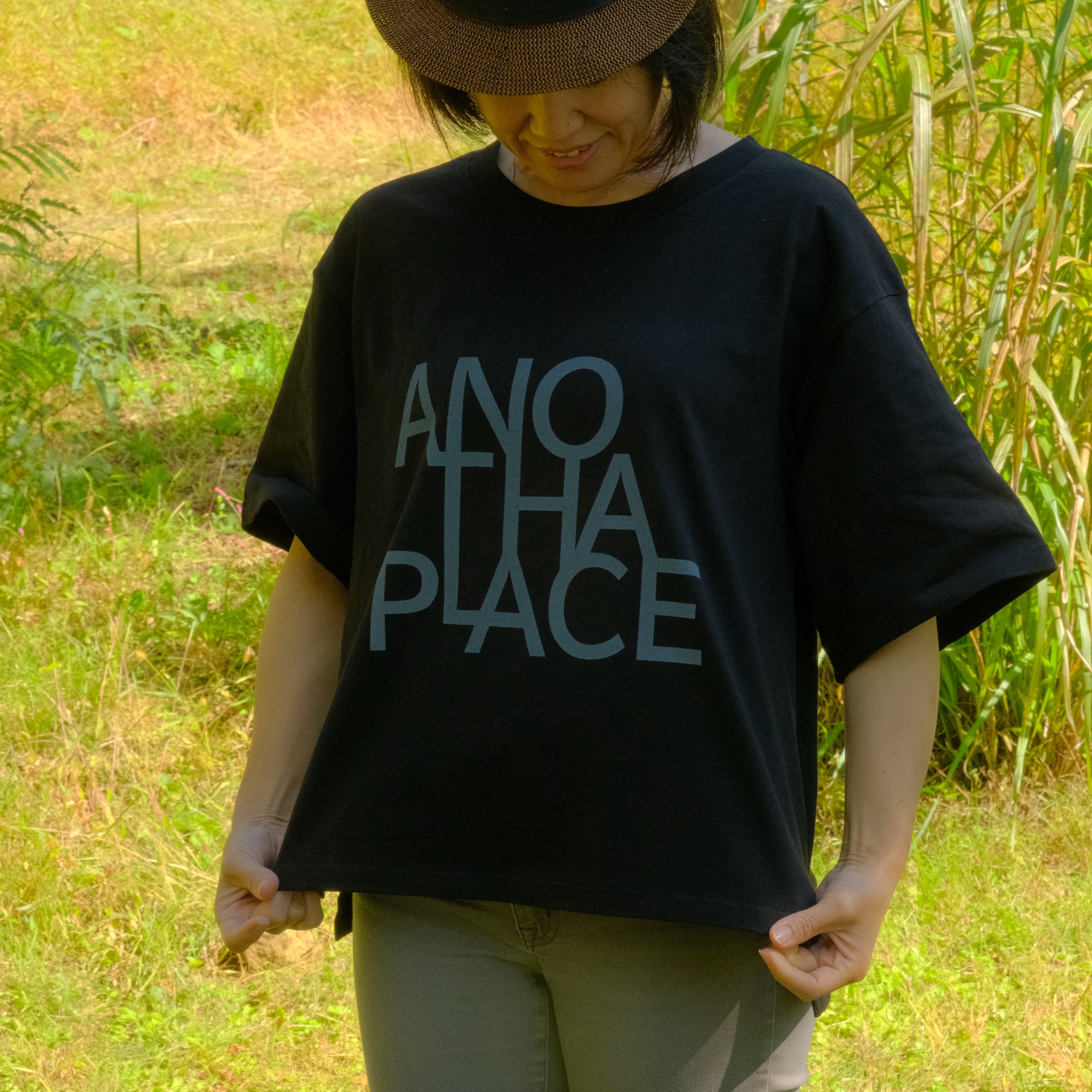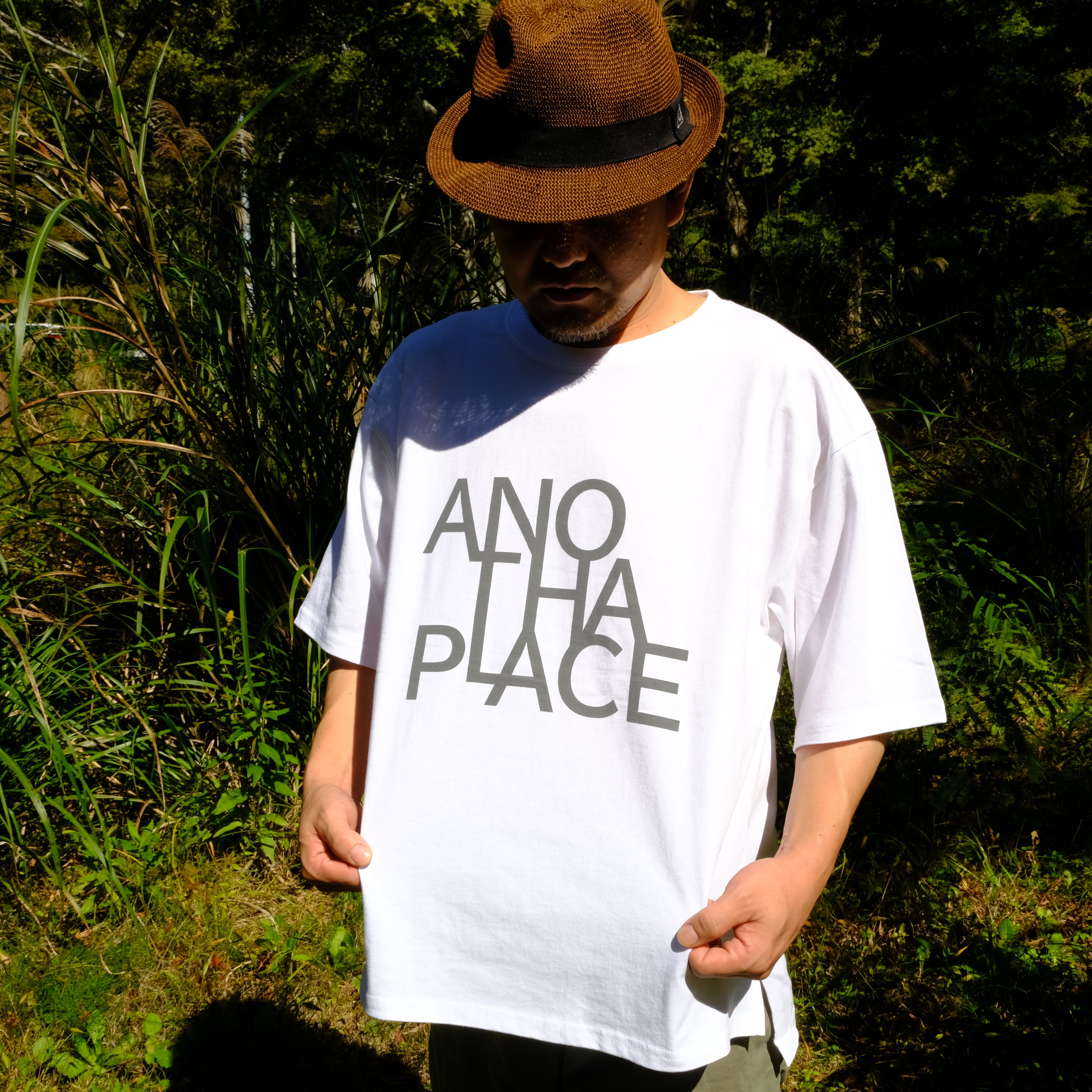 「ANOTHAPLACE」の文字が織りなすグラフィックは、日常から少し離れた“もうひとつの場所”を想像させ、着る人の感性をさりげなく表現します。